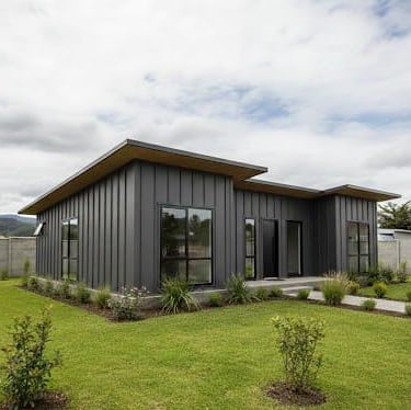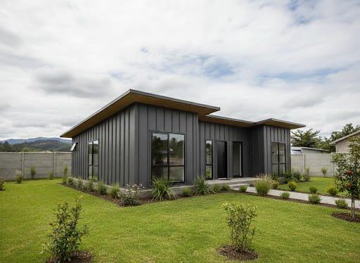 La casa fue construida con un sistema eficiente y de rápida ejecución, priorizando durabilidad, aislación y una estética moderna. El trabajo incluyó revestimiento exterior completo, terminaciones interiores, instalación de ventanas termopanel y diseño del entorno para lograr una integración armoniosa con la parcela.